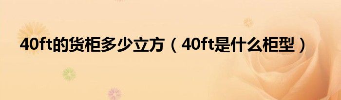 最佳答案关于40ft的货柜多少立方,40ft是什么柜型这个很多人还不知道,今天菲菲来为大家解答以上的问题,现在让我们一起来看看吧!1、FT 代表尺寸。2、40英尺 一般指40平柜 我是货代 有什么问题可以联系我。本文到此分享完毕,希望对大家有所帮助。