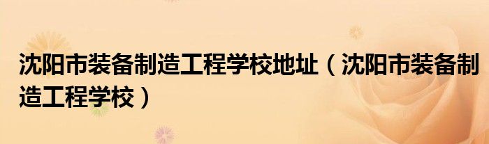 大家好,小晋来为大家解答以下问题,关于沈阳市装备制造工程学校地址,沈阳市装备制造工程学校很多人还不知道,今天让我们一起来看看吧!