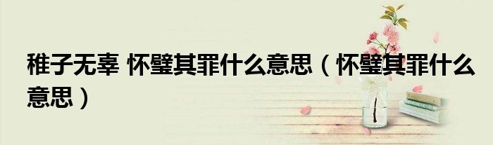 关于稚子无辜 怀璧其罪什么意思,怀璧其罪什么意思这个很多人还不知道,今天菲菲来为大家解答以上的问题,现在让我们一起来看看吧!