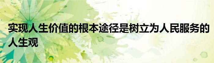 关于实现人生价值的根本途径是树立为人民服务的人生观这个很多人还不知道,今天菲菲来为大家解答以上的问题,现在让我们一起来看看吧!