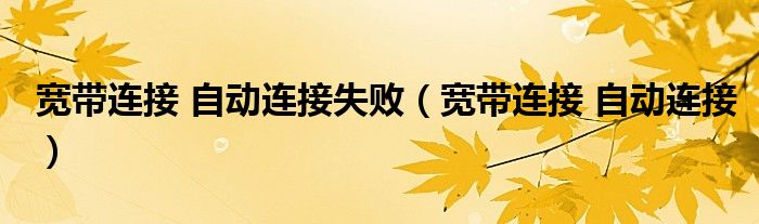 大家好,来宝来为大家解答以下问题,宽带连接 自动连接失败,宽带连接 自动连接很多人还不知道,今天让我们一起来看看吧!