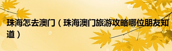 珠海怎去澳门(珠海澳门旅游攻略哪位朋友知道)