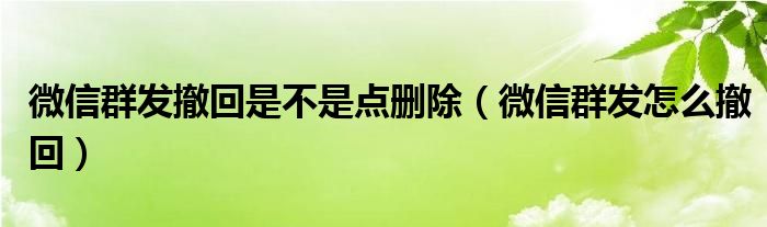 大家好,小晋来为大家解答以下问题,关于微信群发撤回是不是点删除,微信群发怎么撤回很多人还不知道,今天让我们一起来看看吧!