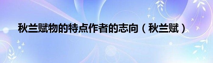 关于秋兰赋物的特点作者的志向,秋兰赋这个很多人还不知道,今天菲菲来为大家解答以上的问题,现在让我们一起来看看吧!