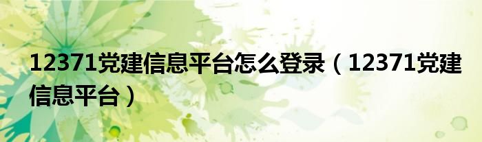 12371党建信息平台怎么登录(12371党建信息平台)
