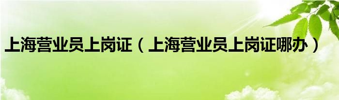 上海营业员上岗证,上海营业员上岗证哪办这个很多人还不知道,小飞来为大家解答以上的问题。现在让我们一起来看看吧!