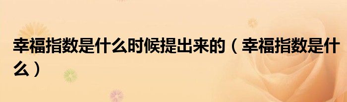 幸福指数是什么时候提出来的(幸福指数是什么)