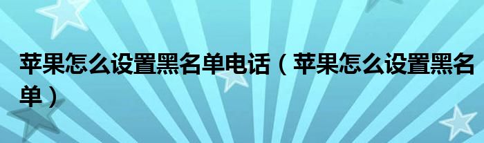 苹果怎么设置黑名单电话(苹果怎么设置黑名单)