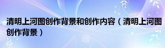 清明上河图创作背景和创作内容(清明上河图创作背景)