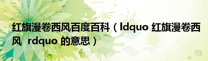 关于红旗漫卷西风百度百科,ldquo 红旗漫卷西风 rdquo 的意思这个很多人还不知道,今天菲菲来为大家解答以上的问题,现在让我们一起来看看吧!