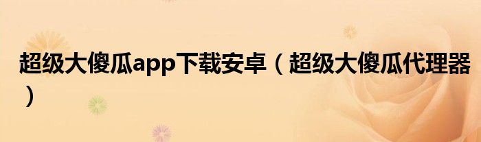 超级大傻瓜app下载安卓(超级大傻瓜代理器)