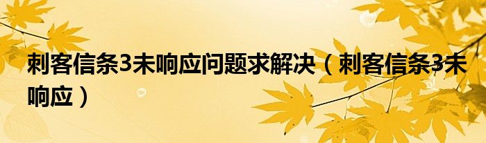 刺客信条3未响应问题求解决(刺客信条3未响应)