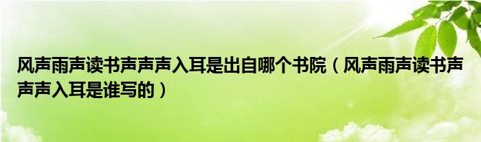 风声雨声读书声声声入耳是出自哪个书院,风声雨声读书声声声入耳是谁写的这个很多人还不知道,小飞来为大家解答以上的问题。现在让我们一起来看看吧!