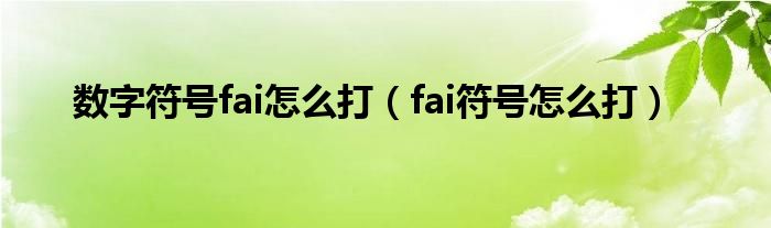 关于数字符号fai怎么打,fai符号怎么打这个很多人还不知道,今天菲菲来为大家解答以上的问题,现在让我们一起来看看吧!