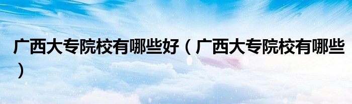最佳答案关于广西大专院校有哪些好,广西大专院校有哪些这个很多人还不知道,今天菲菲来为大家解答以上的问题,现在让我们一起来看看吧!1、南宁职业技术学院 广西体育高等专科学校 广西机电职业技术学院 柳州师范高等专科学校 广西水利电力职业技术学院 桂林师范高等专科学校 广西职业技术学院 桂林航天工...