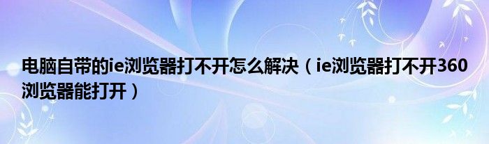 关于电脑自带的ie浏览器打不开怎么解决,ie浏览器打不开360浏览器能打开这个很多人还不知道,今天菲菲来为大家解答以上的问题,现在让我们一起来看看吧!