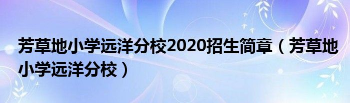 芳草地小学远洋分校2020招生简章,芳草地小学远洋分校这个很多人还不知道,小飞来为大家解答以上的问题。现在让我们一起来看看吧!