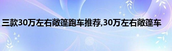 三款30万左右敞篷跑车推荐,30万左右敞篷车