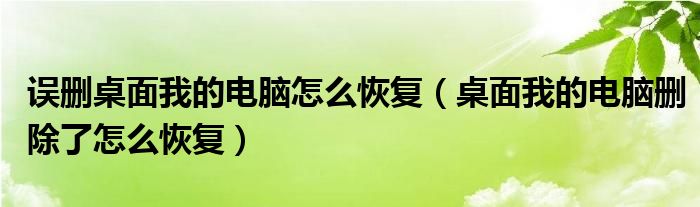 关于误删桌面我的电脑怎么恢复,桌面我的电脑删除了怎么恢复这个很多人还不知道,今天菲菲来为大家解答以上的问题,现在让我们一起来看看吧!