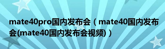 大家好,小常来为大家解答以上问题。mate40pro国内发布会,mate40国内发布会(mate40国内发布会视频)很多人还不知道,现在让我们一起来看看吧!