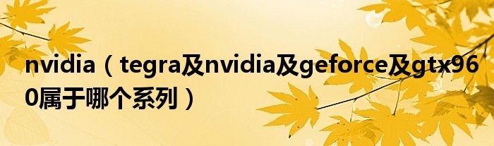 大家好,小常来为大家解答以上问题。nvidia,tegra及nvidia及geforce及gtx960属于哪个系列很多人还不知道,现在让我们一起来看看吧!