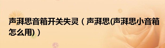 大家好,小常来为大家解答以上问题。声湃思音箱开关失灵,声湃思(声湃思小音箱怎么用)很多人还不知道,现在让我们一起来看看吧!
