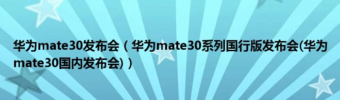 1.2019年9月19日华为公司在德国慕尼黑举行华为mate30新品发布会。华为Mate30是华为研发的智能手机,采用麒麟990处理器,6/8GB+128GB/256GB存储,4200mAh电池,预装EMUI 10系统,屏幕指纹识别,IP53防水,后置三摄,3倍光变,5倍混合变焦,30倍数码变焦。