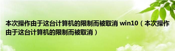 大家好,小飞来为大家解答以上问题,本次操作由于这台计算机的限制而被取消 win10,本次操作由于这台计算机的限制而被取消很多人还不知道,现在让我们一起来看看吧!