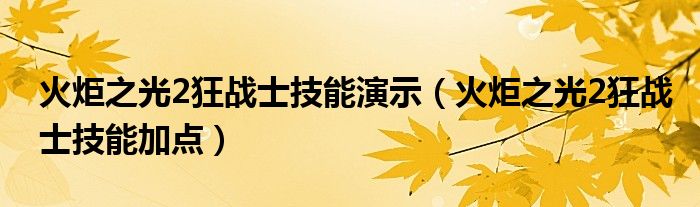 火炬之光2狂战士技能演示,火炬之光2狂战士技能加点这个很多人还不知道,小飞来为大家解答以上的问题。现在让我们一起来看看吧!
