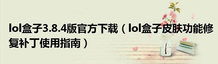 lol盒子3.8.4版官方下载(lol盒子皮肤功能修复补丁使用指南)