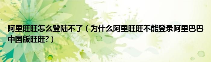 阿里旺旺怎么登陆不了(为什么阿里旺旺不能登录阿里巴巴中国版旺旺?)
