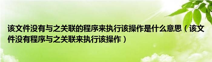 该文件没有与之关联的程序来执行该操作是什么意思(该文件没有程序与之关联来执行该操作)