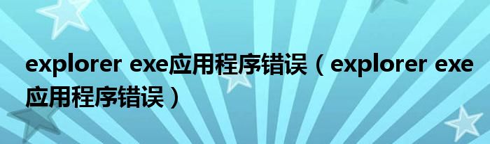 大家好,慧慧来为大家解答以上问题,explorer exe应用程序错误,explorer exe应用程序错误很多人还不知道,现在让我们一起来看看吧!
