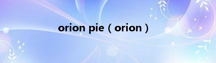 orion pie,orion这个很多人还不知道,小飞来为大家解答以上的问题。现在让我们一起来看看吧!
