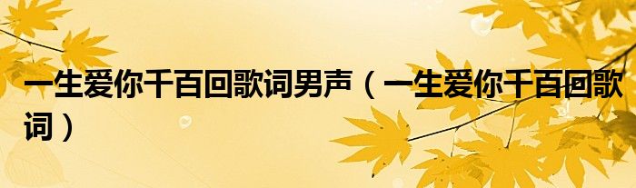 一生爱你千百回歌词男声,一生爱你千百回歌词这个很多人还不知道,小飞来为大家解答以上的问题。现在让我们一起来看看吧!