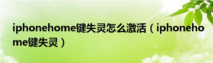 iphonehome键失灵怎么激活(iphonehome键失灵)