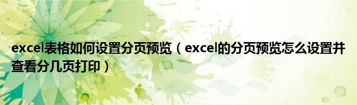 大家好,今天小悦来为大家解答以上问题。excel表格如何设置分页预览,excel的分页预览怎么设置并查看分几页打印很多人还不知道,现在让我们一起来看看吧!