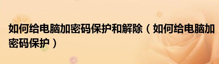 如何给电脑加密码保护和解除(如何给电脑加密码保护)