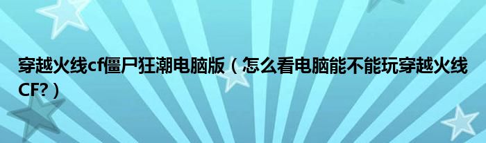 大家好,今天小悦来为大家解答以上问题。穿越火线cf僵尸狂潮电脑版,怎么看电脑能不能玩穿越火线CF?很多人还不知道,现在让我们一起来看看吧!