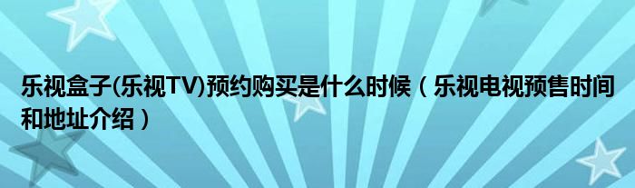 大家好,今天小悦来为大家解答以上问题。乐视盒子(乐视TV)预约购买是什么时候,乐视电视预售时间和地址介绍很多人还不知道,现在让我们一起来看看吧!