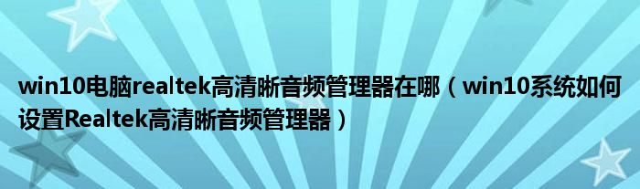 大家好,今天小悦来为大家解答以上问题。win10电脑realtek高清晰音频管理器在哪,win10系统如何设置Realtek高清晰音频管理器很多人还不知道,现在让我们一起来看看吧!