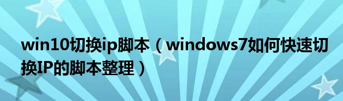 win10切换ip脚本(windows7如何快速切换IP的脚本整理)