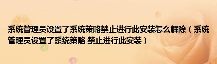 大家好,慧慧来为大家解答以上问题,系统管理员设置了系统策略禁止进行此安装怎么解除,系统管理员设置了系统策略 禁止进行此安装很多人还不知道,现在让我们一起来看看吧!