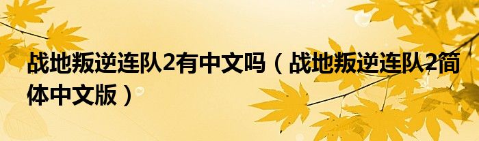 关于战地叛逆连队2有中文吗,战地叛逆连队2简体中文版这个很多人还不知道,今天菲菲来为大家解答以上的问题,现在让我们一起来看看吧!