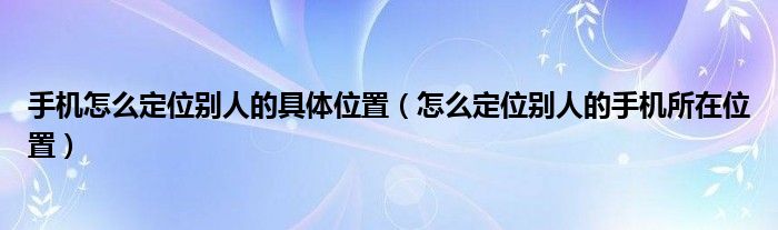 如何定位别人的手机位置,如何定位别人的手机位置。
