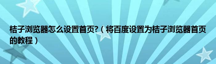 桔子浏览器怎么设置首页?(将百度设置为桔子浏览器首页的教程)