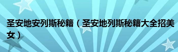 圣安地安列斯秘籍(圣安地列斯秘籍大全招美女)