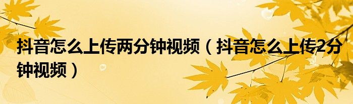 大家好,小晋来为大家解答以下问题,关于抖音怎么上传两分钟视频,抖音怎么上传2分钟视频很多人还不知道,今天让我们一起来看看吧!