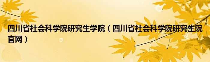 四川省社会科学院研究生学院(四川省社会科学院研究生院官网)