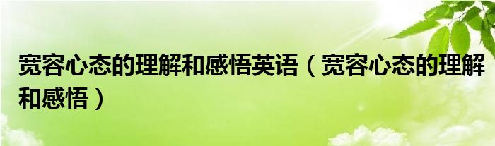 大家好,小晋来为大家解答以下问题,关于宽容心态的理解和感悟英语,宽容心态的理解和感悟很多人还不知道,今天让我们一起来看看吧!